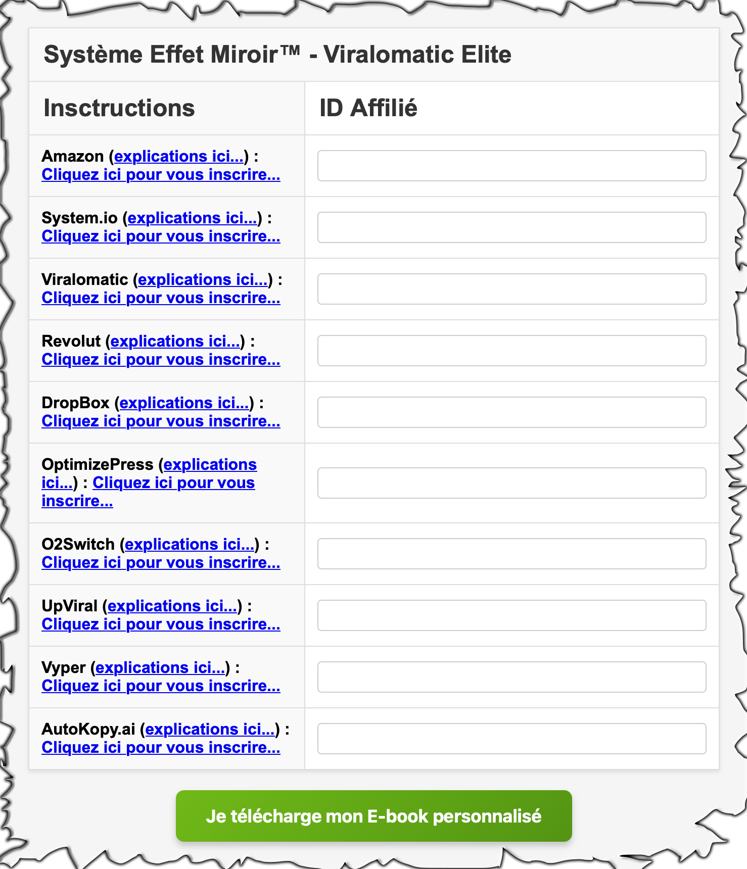 Tu n'as qu'à remplir le formulaire une seule fois... Et laisser le système transformer automatiquement ton E-book en machine à commissions.
